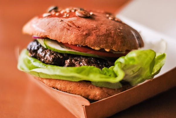 wołowina/jajko sadzone/bekon/majonez/musztarda/konfitura/pomidor/sałata -